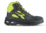 High and comfortable safety shoe, from the Red Over range by U-Power, upper in soft grain leather, textile inserts and abrasion resistant toe cap, water repellent in composite, Wingtex lining and Sole in soft PU foam and Infinergy®.