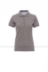 Women’s short-sleeved fitted polo shirt with 5, matching, mother-of-pearl effect buttons, rib collar and sleeve edging, light blue poplin inserts on the inside collar, side vents, label transfer, inner neck tape.