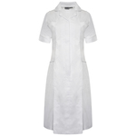 Princess seam detail. With epaulette loops. Round collar. Two breast pockets, with a waterproof lining in the left pocket. Two lower pockets, with a key loop in the right pocket. Concealed zip fastening, with press stud. Action back, front and back kick pleats for ease of movement. Self coloured trim to collar, sleeves and lower pockets.